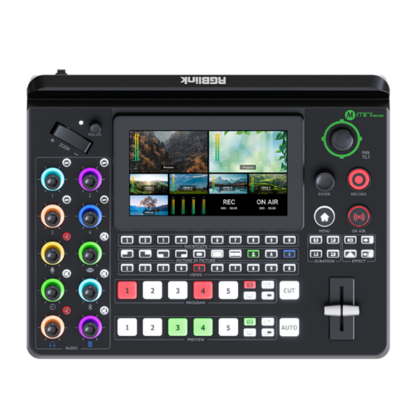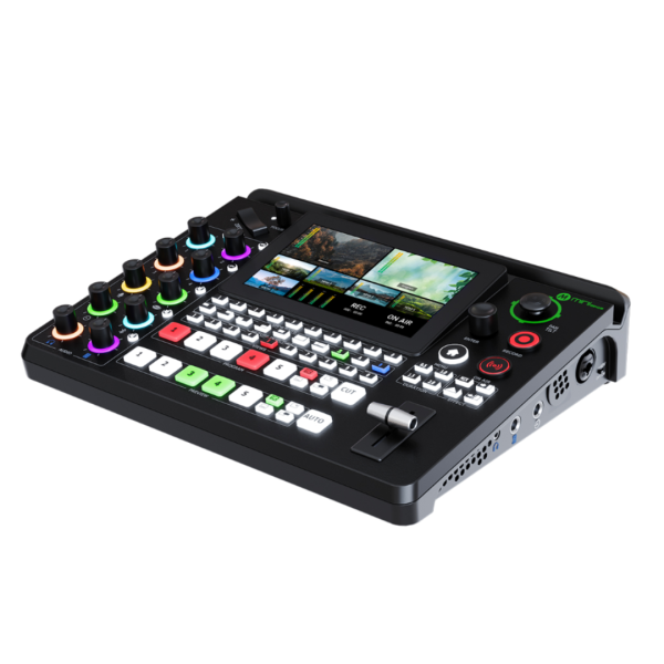 Es un potente y compacto mezclador de video multicanal diseñado para transmisiones en vivo profesionales. Integra entradas HDMI y UVC, mezclador de audio completo, control de cámaras PTZ y herramientas avanzadas como Chroma Key, transmisión directa y grabación, todo en un solo equipo portátil ideal para creadores de contenido, estudios móviles y eventos en tiempo real.